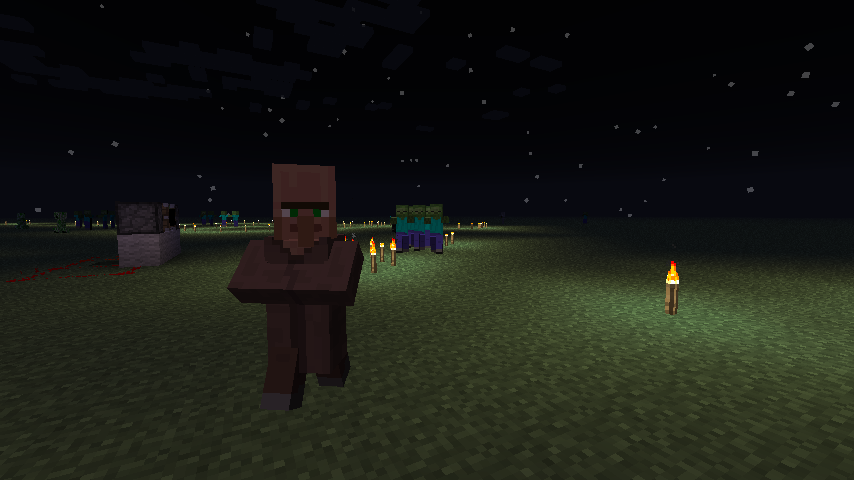 - The Villagers AI has been improved. They will now interact with each other and passive mobs, they will go inside shelter if it is raining, and they will run from Zombies.